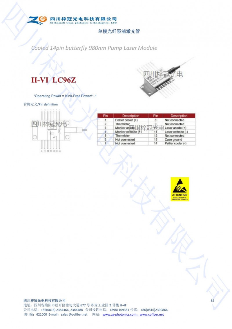 供应ITU 波长 DFB 激光器