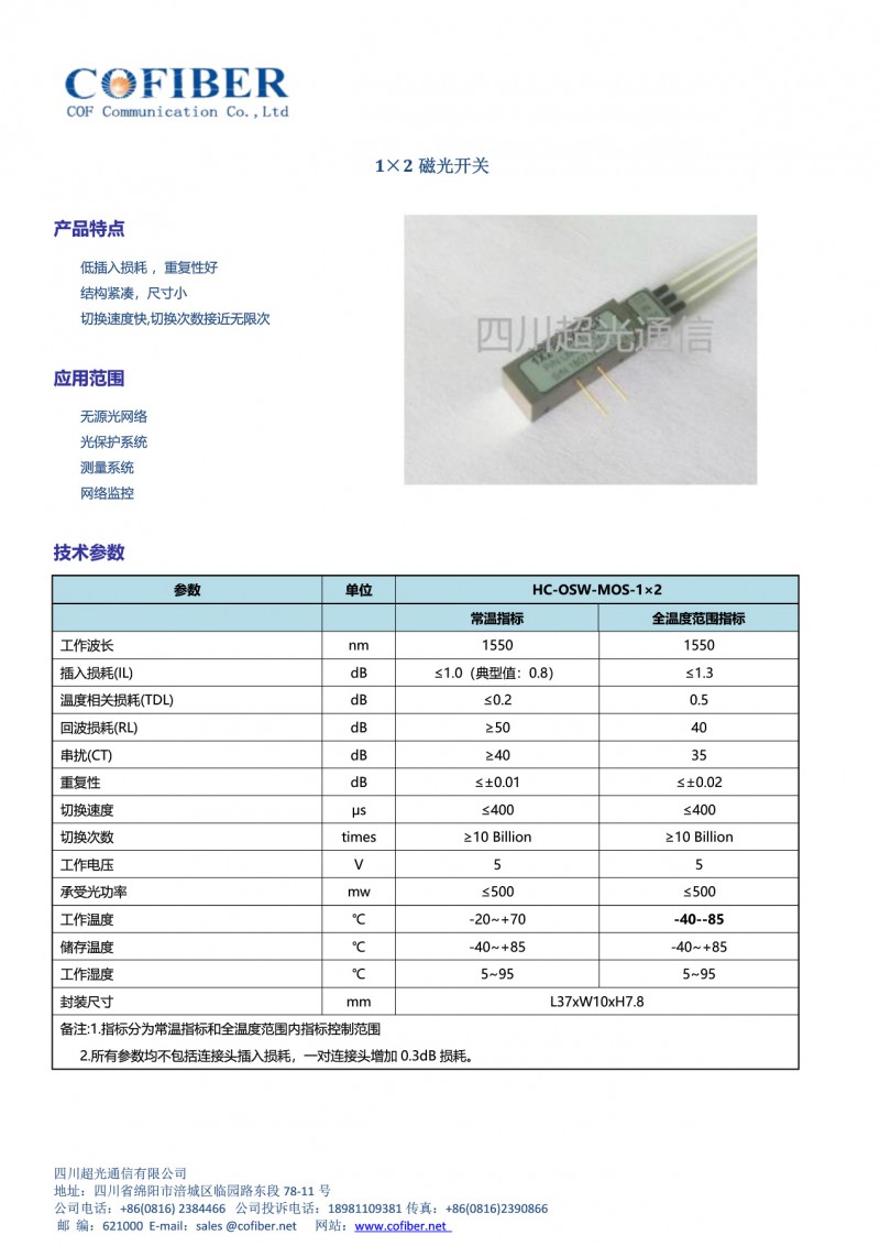 供应磁光开关1*2,快速,双向